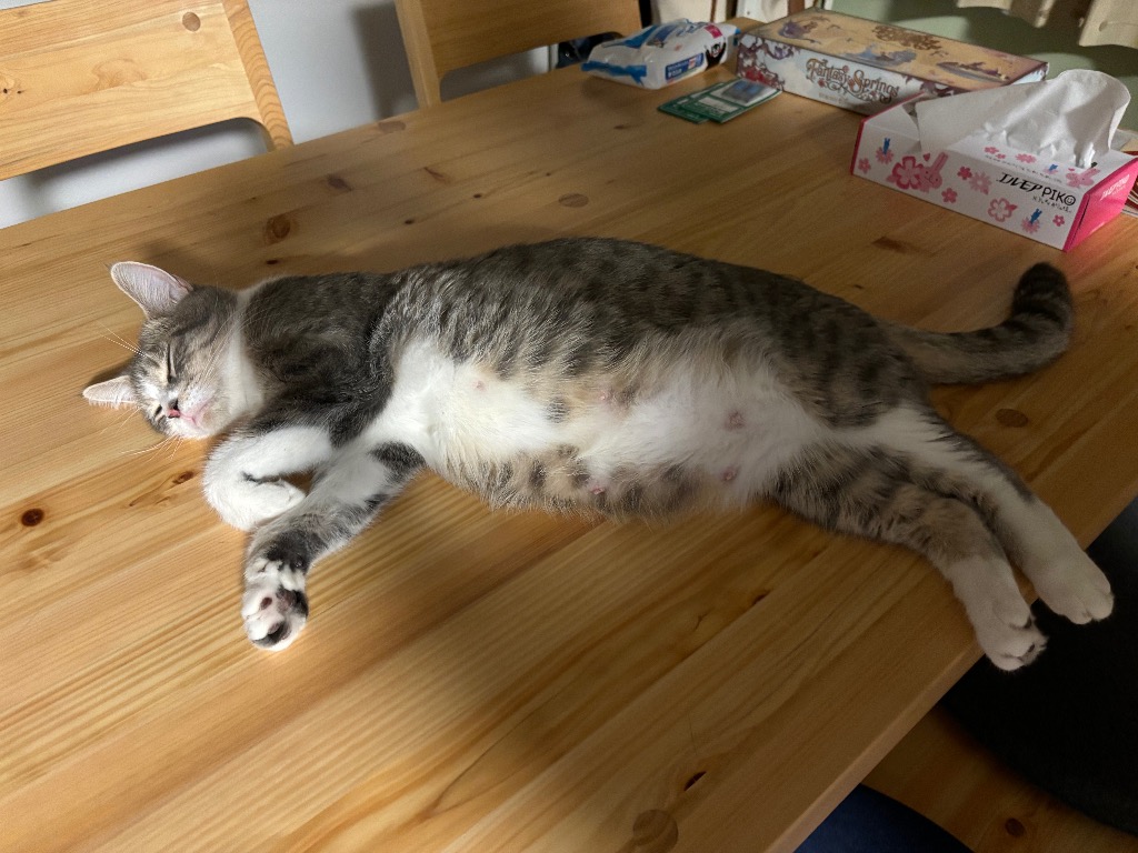 こんにちは。今日の郡山市はどんよりだけど、過ごしやすいお天気で、窓を開けとくといい風が入ってきます。猫達も伸びて寝てる子もいれば、丸くなって寝てる子もいますね😊さて、マンチカンのラムちゃんですが、そろそろ出産をむかえます💕前回同様、今回も大きいお腹を抱えても走り回っています。見てる私達の方が心配になってしまいます😅今回も私が立ち会える事を願うばかりです。