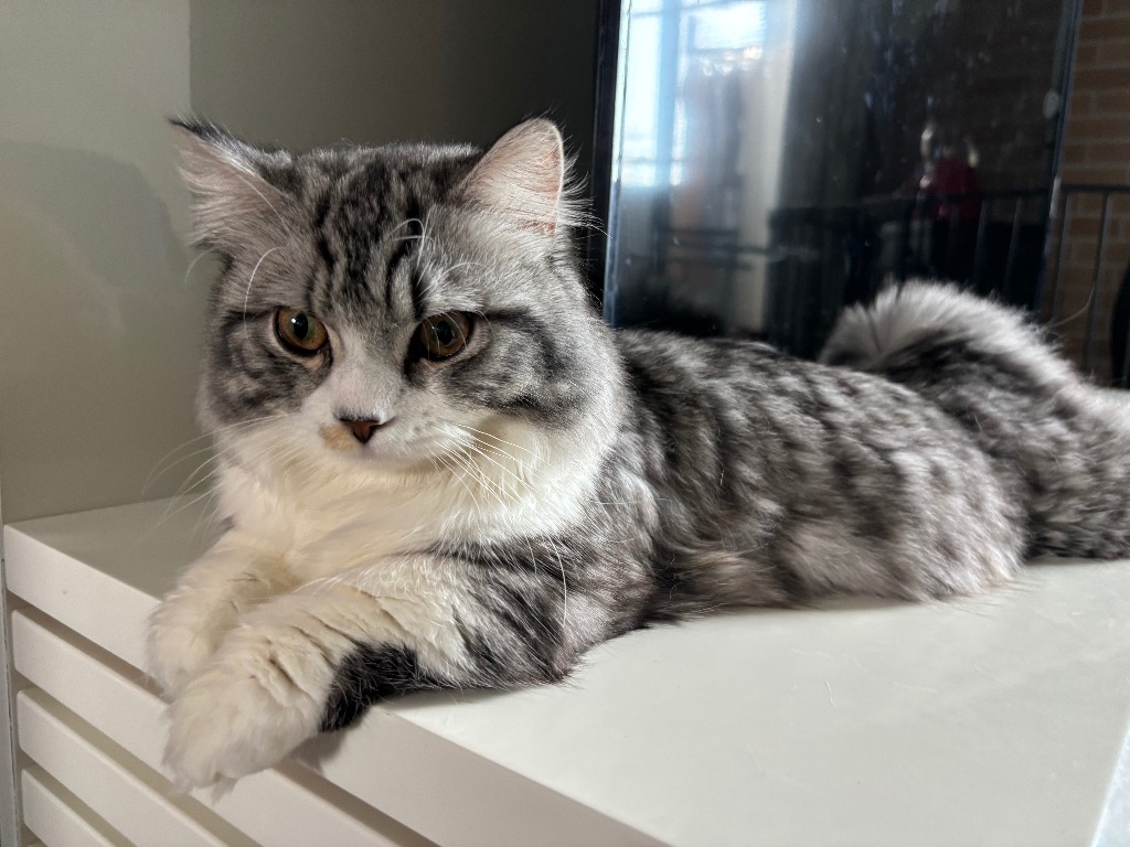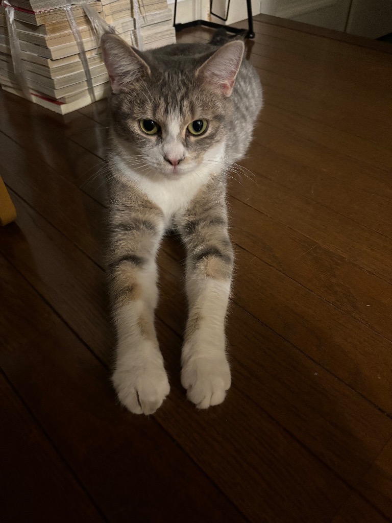 こんにちは。今日の郡山市はどんより厚い雲に覆われています。いつ雨が降ってもおかしくないですね〜早く洗濯物乾いてくれないかな〜😅さて、今日はマンチカンのオス猫ちゃん、ケンシロウを紹介しますね。ケンシロウはまだ8ヶ月なので、まだまだお子様です💕とっても可愛いイケメンくん🐈当猫舎のアイドル的存在です。