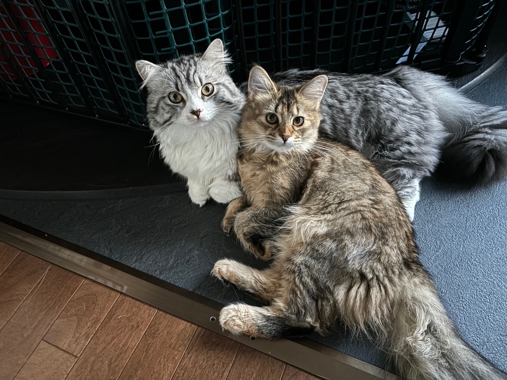 こんにちは。今日の郡山市は朝雨が降っていましたが、今は止んでますね。日々の気温差が激しいので、皆さんも体調管理気を付けてくださいね。さて、今日はスフィンクスをご紹介いたします🤭マンチカンのラムちゃんとベルちゃんです✨お手手が伸び〜て、とっても可愛いですね💕