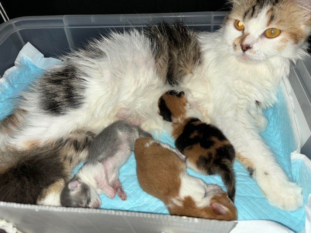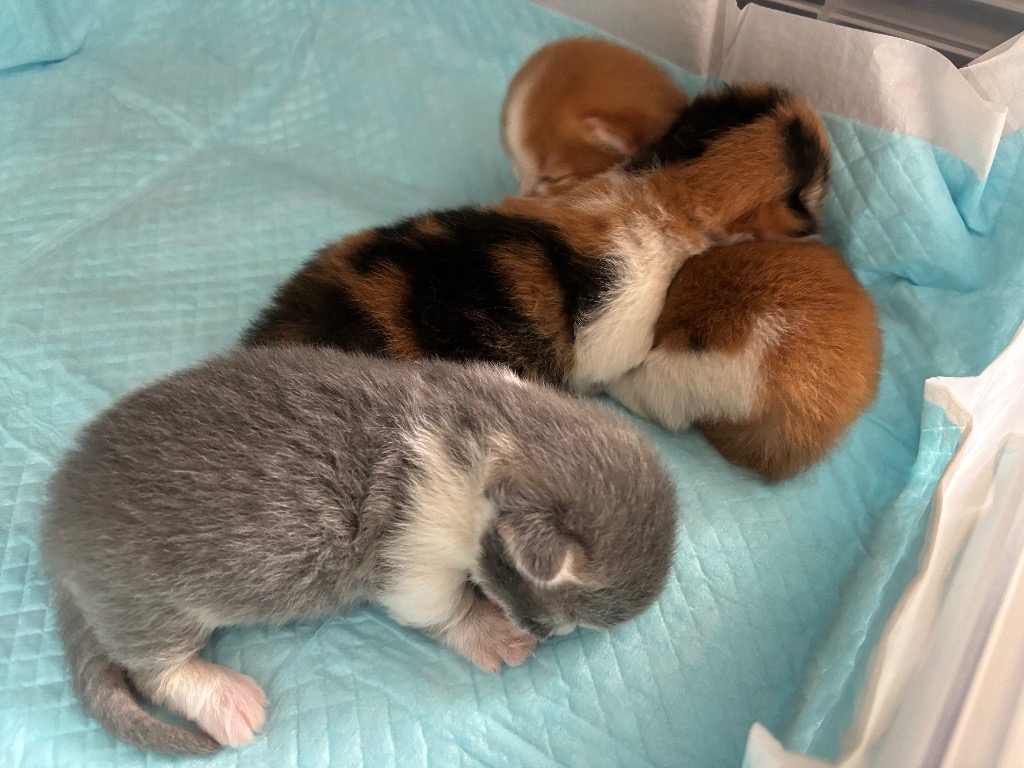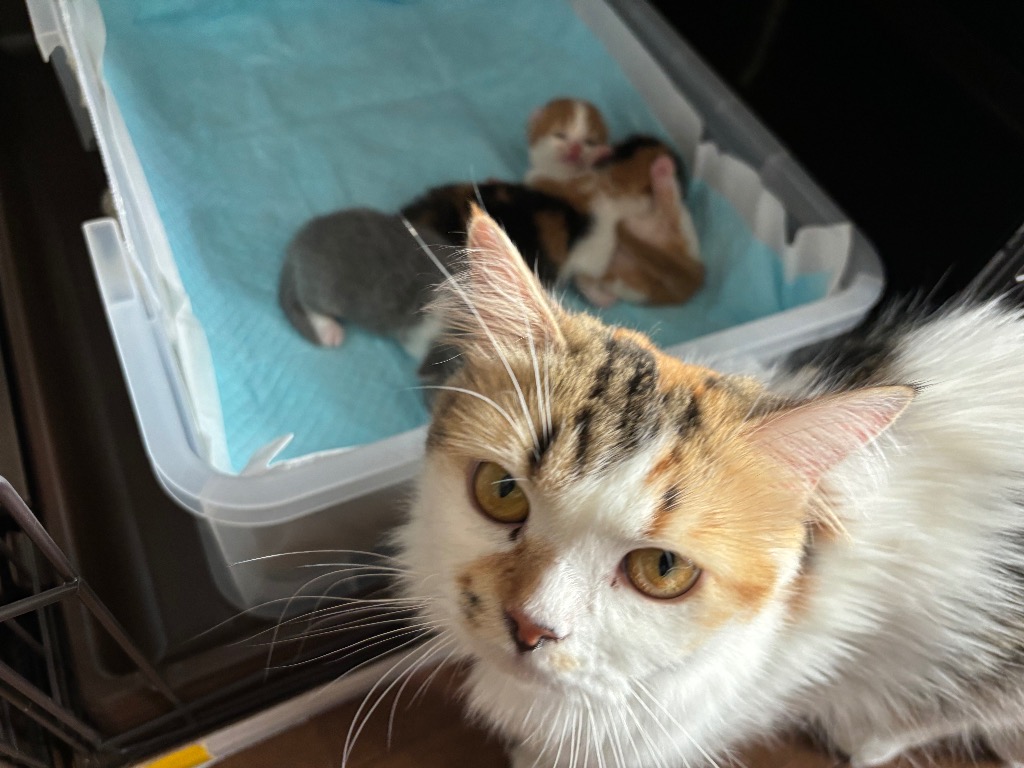こんにちは。今日の郡山市は過ごしやすい気温ですが、動くとじっとり汗かきますね😅さて、今日は嬉しいニュースをお届けしますね。タイトルにも載せましたが、マンチカンのアーニャちゃんが無事出産しました〜🤗3匹産まれたのですが、なんと3匹とも短足ちゃんでした😳これは当猫舎では初めての事ですね〜✨カイくんやったね✨