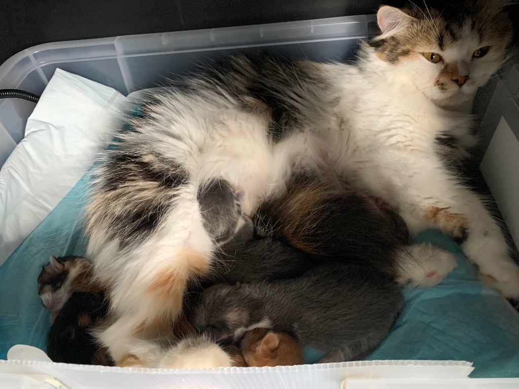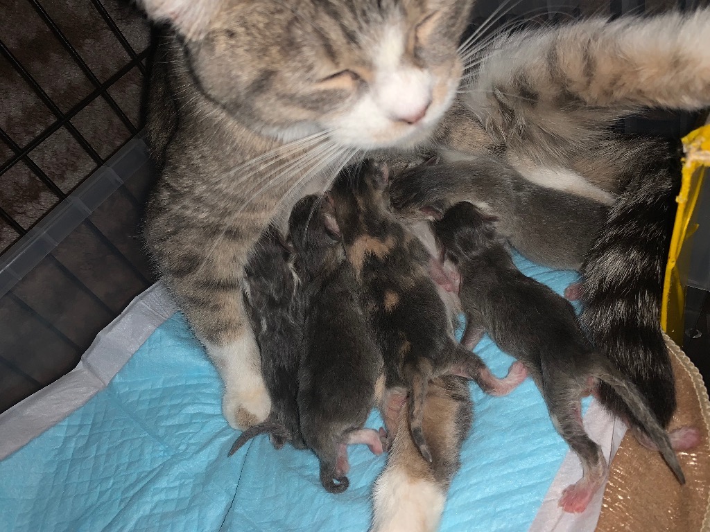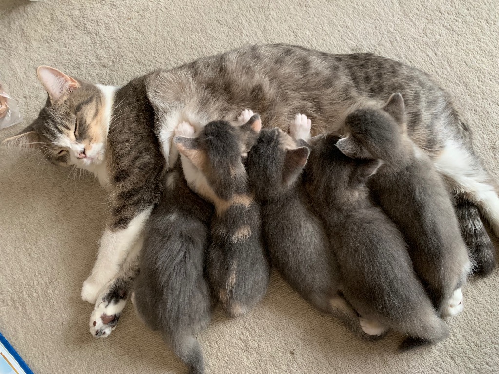 こんにちは。今日の郡山市はどんより曇空。小雨が降り始めました☂️また黄砂で車が汚れちゃうのかな〜😓…少し余談になってしまいました💦春の出産ラッシュ🌸マンチカンのラムたんが初めての出産で無事ママになりました😌5匹の可愛いベビニャンが産まれ、ラムは片時も離れず、おっぱいをあげてお世話をしています✨ママの愛情をたっぷり感じ、とっても可愛い子達になるでしょうね😊