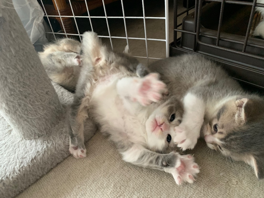 こんにちは。今日の郡山市は朝から雨。雨だとカイくんがベランダに出れないね〜😅カイくんはマンチカンのオスで、クーちゃんとラムとアーニャのお子達のパパさんです✨(初登場🤭)クーちゃん子達はお目目も開いて元気いっぱいです。
